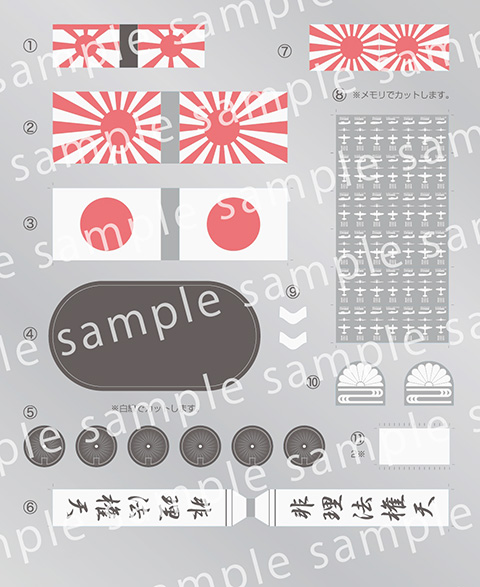 □シールにはマストに掲げる戦闘旗、天一号作戦時の司令官座上を示す中将旗シールを収録。