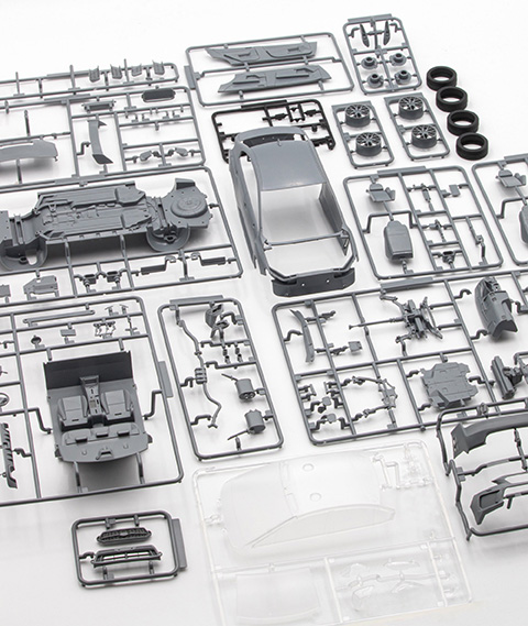 ・ランナー×17、・ゴム素材タイヤ×4、・組み立て説明書×1、・デカール×1 、・マスキングシール×1