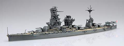 製品は左右分割式の艦体で、昭和16年開戦時の主砲6基搭載した威風堂々たる姿をモチーフにしています。