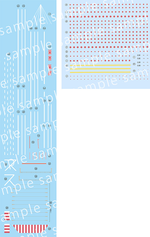 →軍艦旗等はサイズ3種を用意。実物の10巾、6巾、3巾の寸法を1/700スケールとした内容