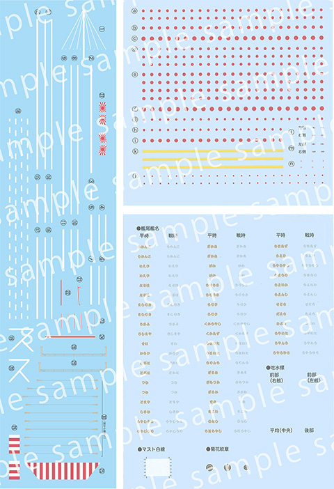 ・艦尾艦名や後部マスト用白線、喫水標など収録したデカールが2枚