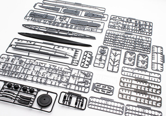 ・艦橋構造物基部は、スライド金型の起用により4面に彫刻を施した一体化パーツ