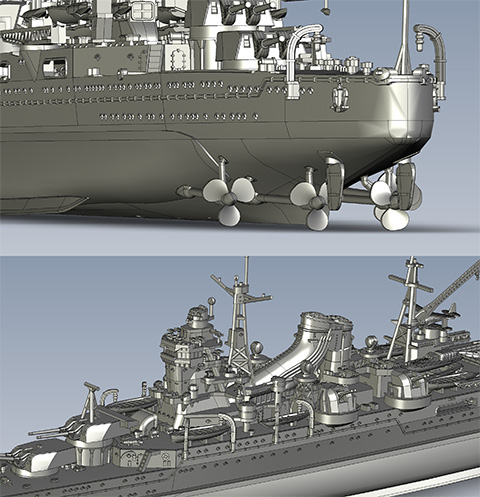 →舷外電路は艦体に一体モールドとし、三隈/鈴谷/熊野とは異なる走り形状を表現