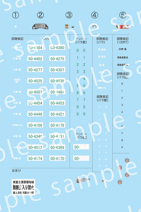 ・主な使用部隊表記は、10および15即機-火支、16・21・34・37・40普-重、空挺団-特1などを収録
