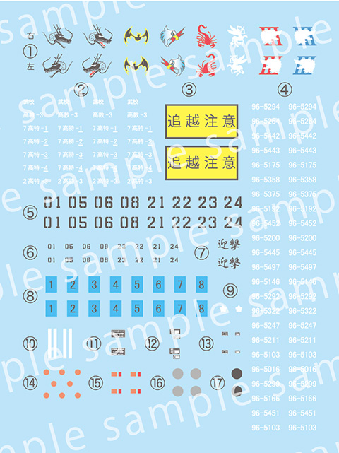 ・各駐屯地で観閲行進時に隊旗が掲げられた車両や、過去に特徴あるマーキングがされた車両を発発3/4連搭載車均等に収録。