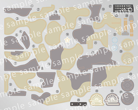 枯草色と土地色の迷彩を再現できるカット済みのリアルシールが付属。